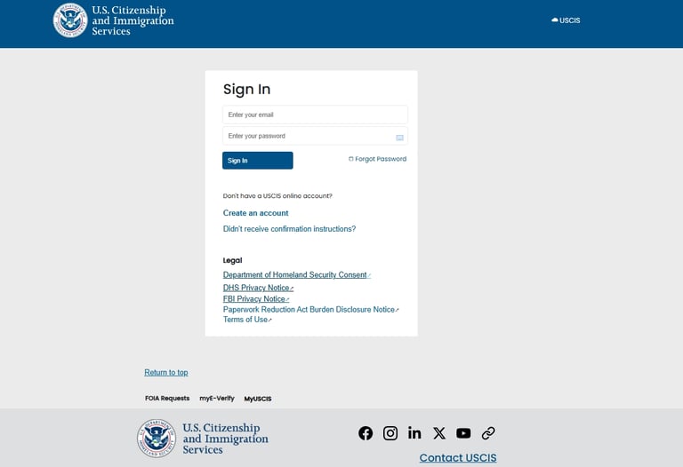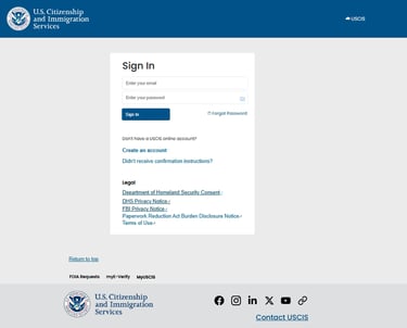 Una vez dentro, navega por las secciones relevantes como "Check Case Status," "Forms," o "Tools" según lo que necesites validar.